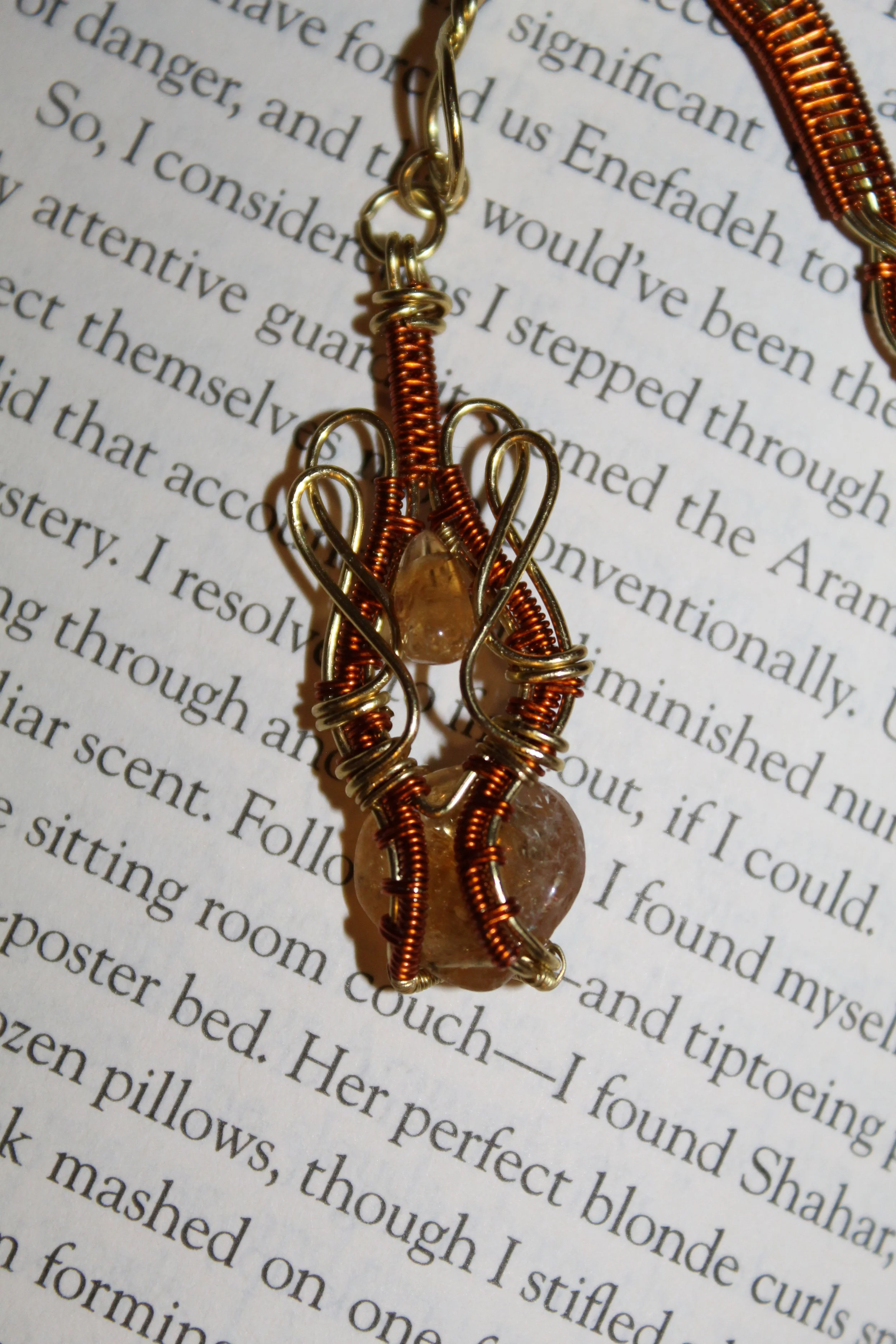 Categories: All Bookmarks Seasonal Crowns Necklaces Earrings and Ear Cuffs Bracelets Pendants Rings Sun Catchers Dream Catchers Shop All | Bookmarks | Seasonal | Crowns | Necklaces | Earrings and Ear Cuffs | Bracelets | Pendants | Rings | Sun Catchers | Dream Catchers | Quick View Rosebud - Wire Weaved Rhodonite Pendant $115.00 Purchase Added! Quick View Golden Flash - Wire Weaved Labradorite Mini Pendant $95.00 Purchase Added! Quick View Twilight - Wire Weaved Byzantine Chainmaille Sunstone Dreamcatcher Pendant $75.00 Purchase Added! Quick View Purple Heart - Purple dyed Quartz Wire Weaved Bookmark $35.00 Purchase Added! Quick View Peach Dreams - Wire Weaved Bookmark $35.00 Purchase Added! Quick View Irish Belle - Wire Weaved Adjustable Peridot Ring $60.00 Purchase Added! Quick View Serpents Maille - Russian Serpintine, Byzantine Chainmaille Wire Weaved Bookmark $35.00 Purchase Added! Quick View Mossy Maille - Mossagate and Byzantine Chainmaille Wire Weaved Bookmark $35.00 Purchase Added! Quick View Pink Dreams - Wire Weaved Pink Cat's Eye and Rose Quartz Bookmark $35.00 Purchase Added! Quick View Vintage Beauty - Wire Weaved Cloisonne bead Bookmark $35.00 Purchase Added! Quick View Graceful Rays - Wire Weaved Citrine Bookmark $35.00 Purchase Added! Quick View Painted Glass - Wire Weaved Glass Charm Bookmark $35.00 Purchase Added! Quick View Golden Tiger - Wire Weaved Tiger's Eye Bookmark $35.00 Purchase Added! Quick View Twisted Heart - Pink Howlite Wire Weaved Bookmark $35.00 Purchase Added! Quick View Water's Edge - Sapphire and Silver Wire Weaved Bookmark $35.00 Purchase Added! Quick View Elegance - Wire Weaved Banded Agate Locket $135.00 Purchase Added! Quick View Illusions - Copper and Purple Adjustable Agate Ring $80.00 Purchase Added! Quick View Garden Glamor - Gold and green Wire Weaved Earrings with Green Dyed Quartz $70.00 Purchase Added! Quick View Wings of Fire - Red Banded Agate Wire Weaved Butterfly Earrings $65.00 Purchase Added! Quick View Blaze - Sunstone Wire Weaved Adjustable Ring $25.00 Purchase Added! Quick View Tranquil - Tanzanite Wire weaved Adjustable Ring $25.00 Purchase Added! Quick View Silent Night - White Quartz Wire Weaved Adjustable Ring $80.00 Purchase Added! Quick View Evergreen - Green Cat's Eye Glass Wire Weaved Cuff Bracelet and Ring Set $135.00 Purchase Added! Quick View Through the Veil - Amethyst, silver and gold Adjustable Ring $75.00 Purchase Added! Quick View Grace - Seed Pearl and silver adjustable ring $80.00 Purchase Added! Quick View Radioactive - Peridot and silver adjustable ring $100.00 Purchase Added! Quick View Copper Sunrise - Goldstone and copper adjustable Ring $80.00 Purchase Added! Quick View Loki'd - Green, black and gold ring $65.00 Purchase Added! Quick View Black and gold Onyx twist earrings $55.00 Purchase Added! Quick View Tiger and Bone - Tiger's Eye and Bone tube bead Dreamcatcher $65.00 Purchase Added! Quick View Crimson Dagger - Red Flaked Iolite, African Bloodstone and Black Tourmaline Steel Dagger Pendant $145.00 Purchase Added! Quick View Red Striations - Rutilated Red Tourmaline Mini Pendant $135.00 Purchase Added! Quick View Blood Moon - Red Bronzite and Iolite Crescent Moon Mini Pendant $115.00 Purchase Added! Quick View Jaded Path - Wire Weaved Jadeite Cuff Bracelet and Adjustable Ring Set $135.00 Purchase Added! Quick View Snowy Night - White Cat's Eye Wire Weaved Cuff Bracelet and Ring Set $135.00 Purchase Added! Quick View Coiled Serenity - Agate and African Bloodstone Wire Weaved Cuff Bracelet $115.00 Purchase Added! Quick View Refined Elegance - Wire Weaved Tiger's Eye and Hematite Cuff Bracelet $115.00 Purchase Added! Quick View Orange Sunsets - Orange Dyed Quartz Cuff Bracelet $75.00 Purchase Added! Quick View Clouded Skies - Wire Weaved Magnesite Cuff Bracelet $75.00 Purchase Added! Quick View Lilac Dreams - Lilac Dyed Quartz Pendant $125.00 Purchase Added! Quick View Sun Spots - Goldstone Mini Pendant $135.00 Purchase Added! Quick View Suspended Glow - Spiderweb and Pumpkin Dreamcatcher $65.00 Purchase Added! Quick View Glass Pumpkin and Copper Earrings $45.00 Purchase Added! Quick View Horned Bull - Horn Bull Skull Suncatcher $110.00 Purchase Added! Quick View Golden Archer - Wire Weaved Suncatcher $85.00 Purchase Added! Quick View Mystique - Dyed Agate Slice and Amethyst Wire weaved Suncatcher $65.00 Purchase Added! Quick View Autumn's Touch- Suncatcher $65.00 Purchase Added! Quick View Dreams of Blue - Cat's Eye Dreamcatcher $85.00 Purchase Added! Quick View Bone Orchard - Bone and Serpentine Macramé Dreamcatcher $85.00 Purchase Added! Quick View Holy Mother - Mary Mother Dreamcatcher $75.00 Purchase Added! Quick View Day at the Beach - White Shell Dreamcatcher $65.00 Purchase Added! Quick View Roped In - Blue Howlite Adjustable Ring $100.00 Purchase Added! Quick View Nebula - Blue Cat's Eye Glass Ring $45.00 Purchase Added! Quick View Light in the Dark - White Quartz Ring $55.00 Purchase Added! Quick View Adjustable Wire weaved Ring $35.00 Purchase Added! Quick View Solar Flare - Sunstone Adjustable Ring $110.00 Purchase Added! Quick View Dark Flare - Hot Pink Dyed Quartz Pendant $75.00 Purchase Added! Quick View Delicate Grace - Pink Dyed Quartz Pendant $125.00 Purchase Added! Quick View Tree of Life - Citrine Pendant $125.00 Purchase Added! Quick View Dark Heart - Rose Quartz Pendant $75.00 Purchase Added! Quick View Jasper Butterfly Chainmail Necklace and Earring Set $100.00 Purchase Added! Quick View Moss Agate Wire weaved Chainmail Earring and Pendant Set $125.00 Purchase Added! Quick View Sodalite and Howlite Helm Weave Chainmail Choker $125.00 Purchase Added! Quick View White Quartz, Black and White Agate and Red Crystal Chainmail Necklace and Earring Set $200.00 Purchase Added! Quick View Gold and Silver Chained Ear Cuff $35.00 Purchase Added! Quick View Copper Wire Weaved Ear Cuff $35.00 Purchase Added! Quick View Red Dyed Sponge Coral Hooped Earrings $35.00 Purchase Added! Quick View Rose 